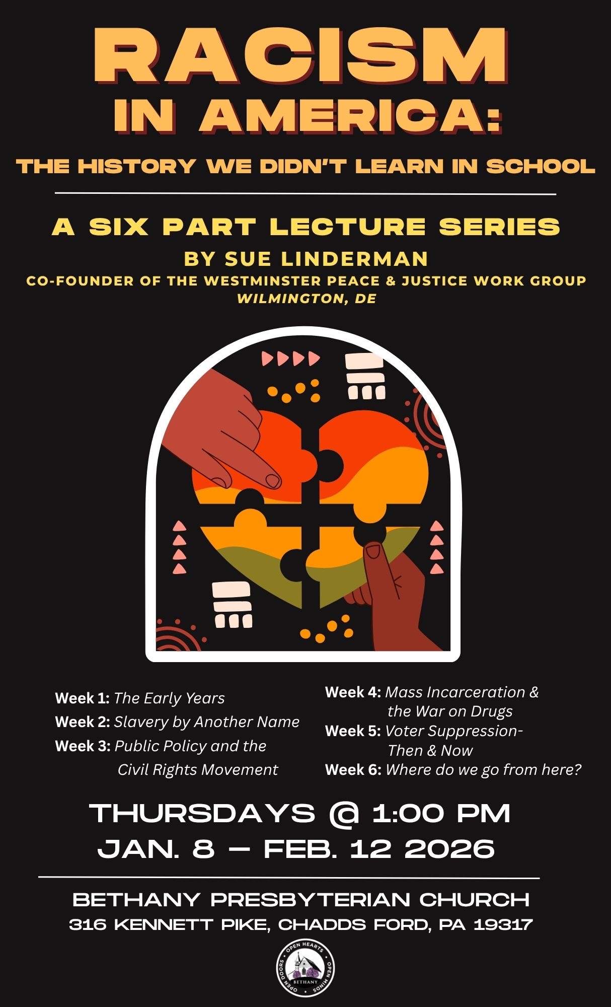 1:00 pm Thursdays January 8-February 12 • Bethany Presbyterian Church