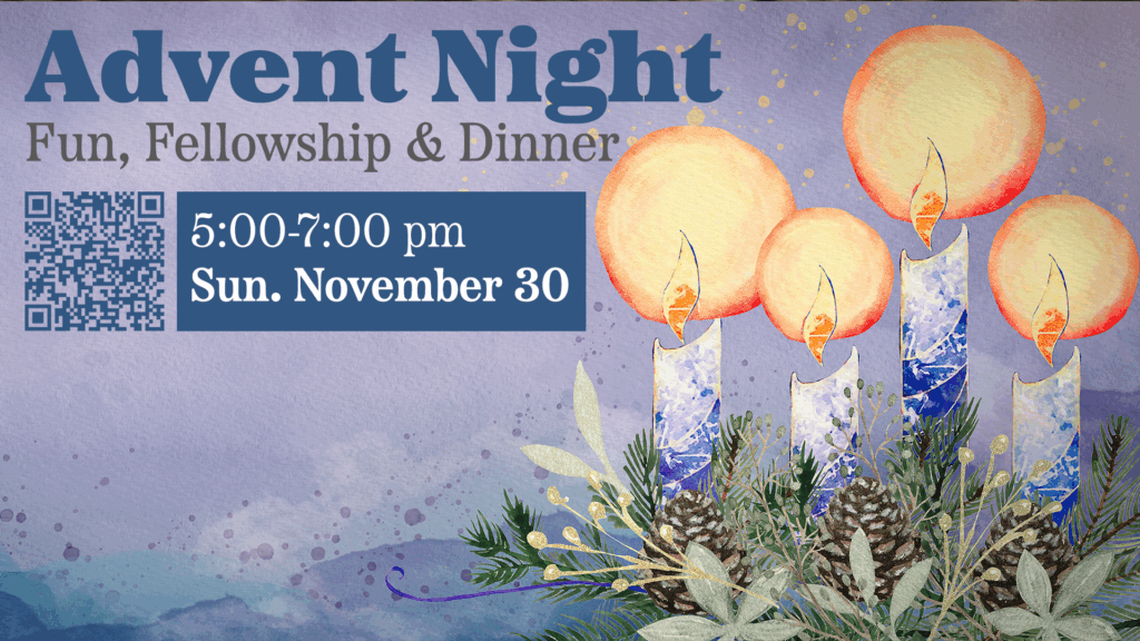 Join us for an evening of fellowship, fun, and hope as we walk into the journey of Advent together. Click here to RSVP.