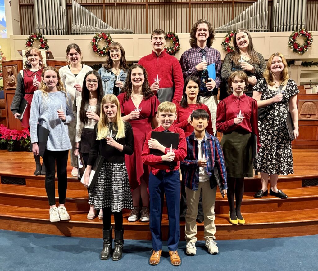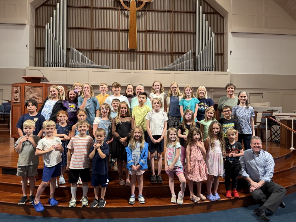 The Children’s Choir (grades 2-5) shares fundamentals of music through games and musical activities. We sing monthly in worship, usually during the 9:00 am traditional service. We also present pageants, musicals, or other concerts.